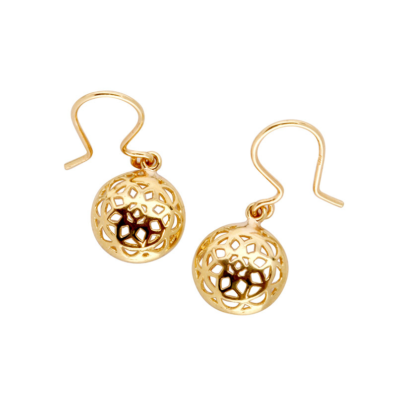 Loading... Please wait...9ct yellow gold fancy drop flower filigree hook earrings.
