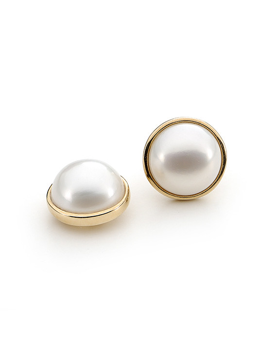 9ct yellow gold white Mabe Pearl 10mm stud earrings.