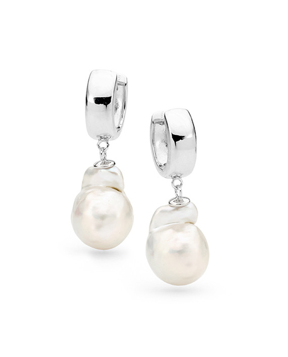 Loading... Please wait...Sterling silver nucleated white Baroque 13-14mm Freshwater Pearl Huggy Earrings.