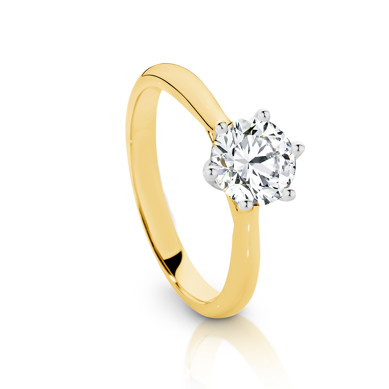 Loading... Please wait...18ct yellow gold 1.00ct Diamond (IJK/P1) six claw solitaire ring. Currently available in a size "N".