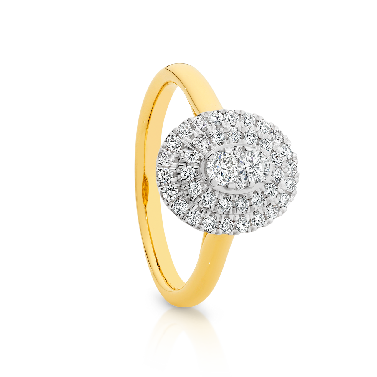 Loading... Please wait...9ct yellow gold oval Diamond cluster ring featuring a total diamond weight of 0.50ct (HI/I1-2). Currently available in a size "P".