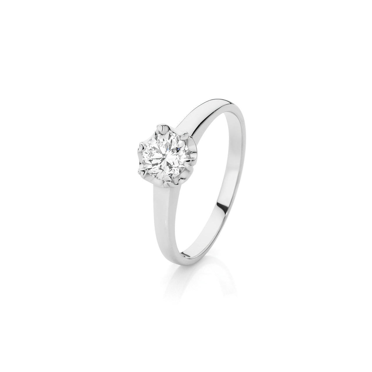 Loading... Please wait...18K white gold ring featuring a 0.66 carat Bluefire 144 Diamond, H colour and VS2 clarity. Current size in stock "N 1/2".
