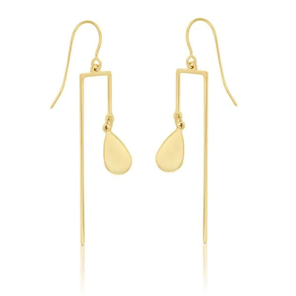 Loading... Please wait...9ct yellow gold polished bar and pear drop earrings with shepherd hook.