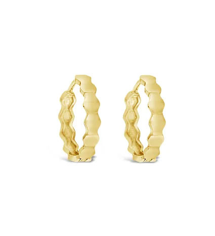 Loading... Please wait...9ct yellow gold faceted hexagon shape 12mm huggie earrings.