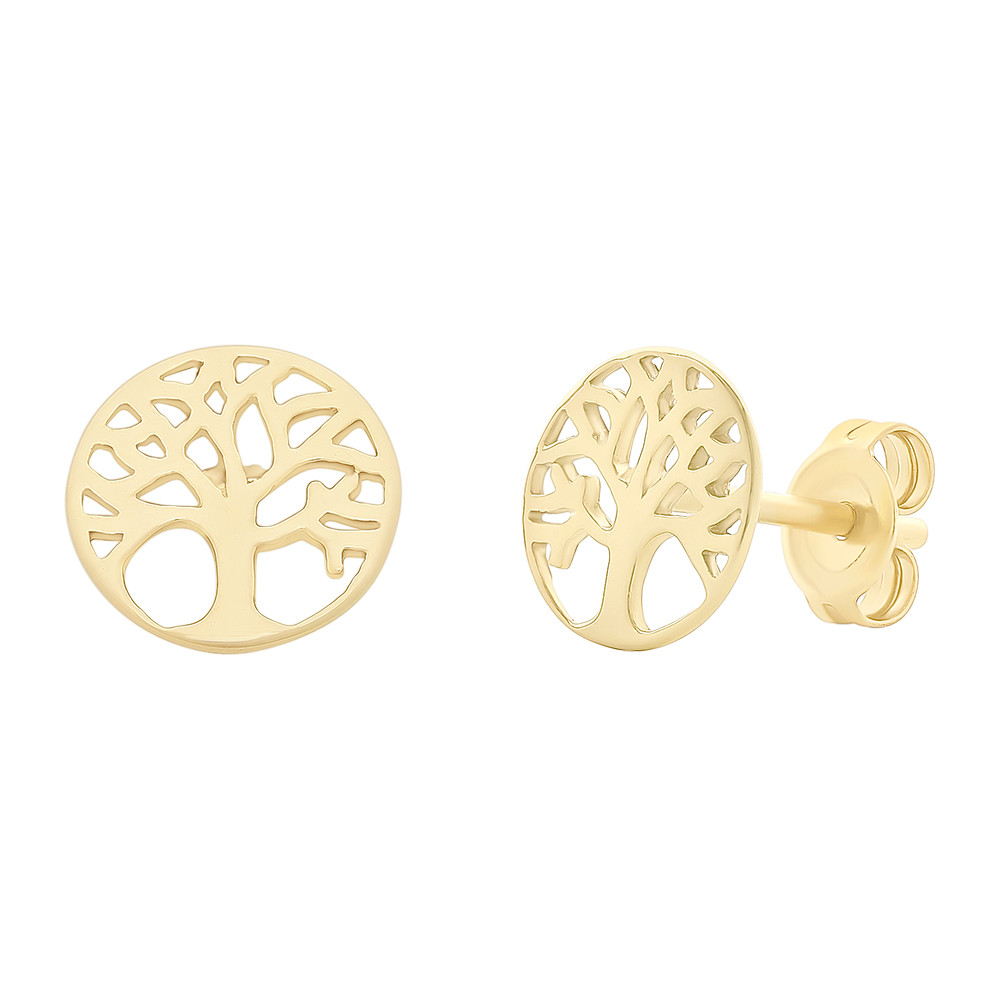 Loading... Please wait...9ct yellow gold Tree of Life stud earrings.