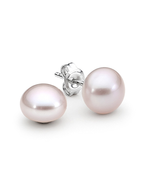 Loading... Please wait...Sterling silver pink button 10-10.5mm freshwater pearl stud earrings.