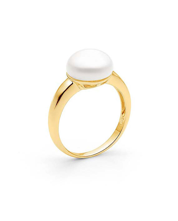 Loading... Please wait...9ct yellow gold white button 10.5mm-11mm Freshwater Pearl ring. Size "O" currently available.