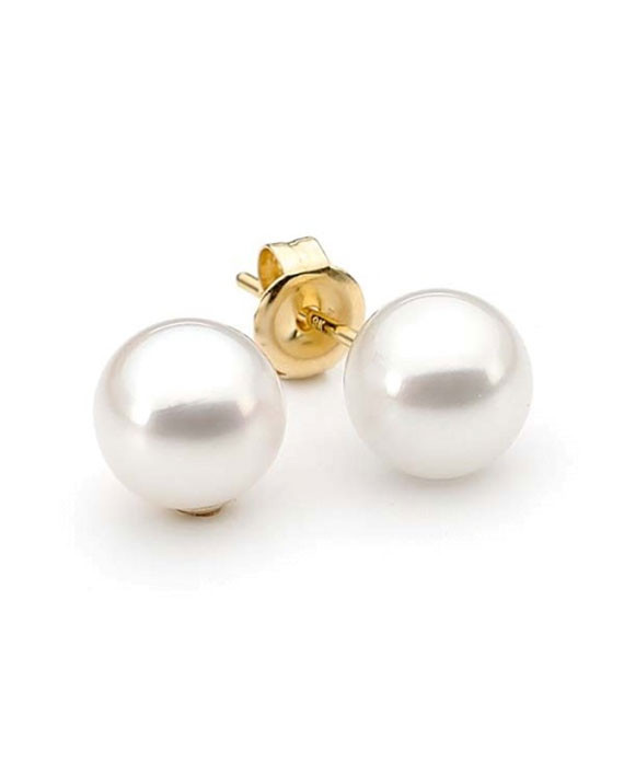Loading... Please wait...18ct yellow gold 6-6.5mm Japanese Akoya Pearl stud earrings (AA grade).