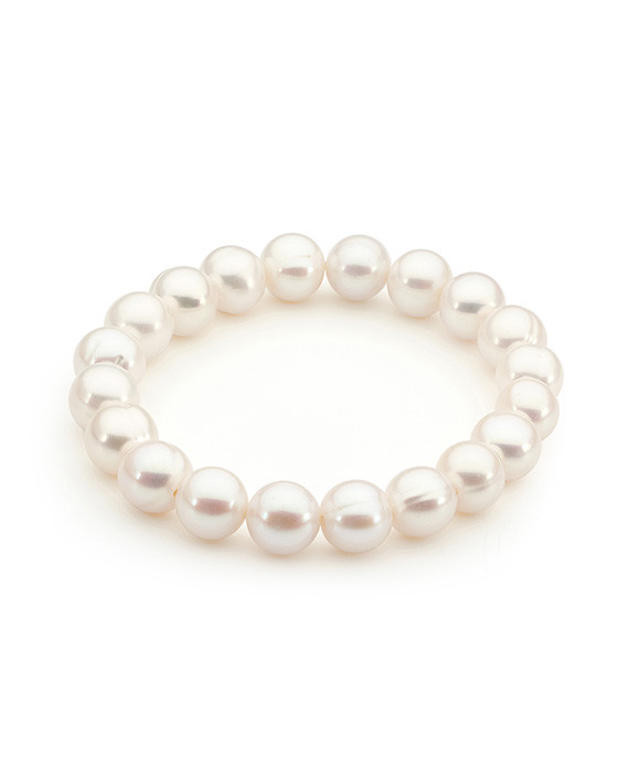 Loading... Please wait...White "off round" 9.5-10.5mm Freshwater Pearl stretch-fit bracelet.