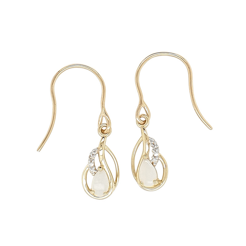 Loading... Please wait...9ct yellow gold shepherd hook earrings with Opal and Diamond featuring a total Diamond weight of 0.01ct (H I2).