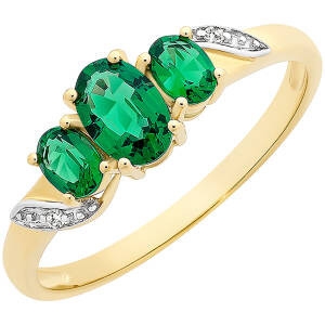 Loading... Please wait...9ct yellow gold created Emerald and Diamond ring featuring 3x oval created Emerald. Size "N" currently available.