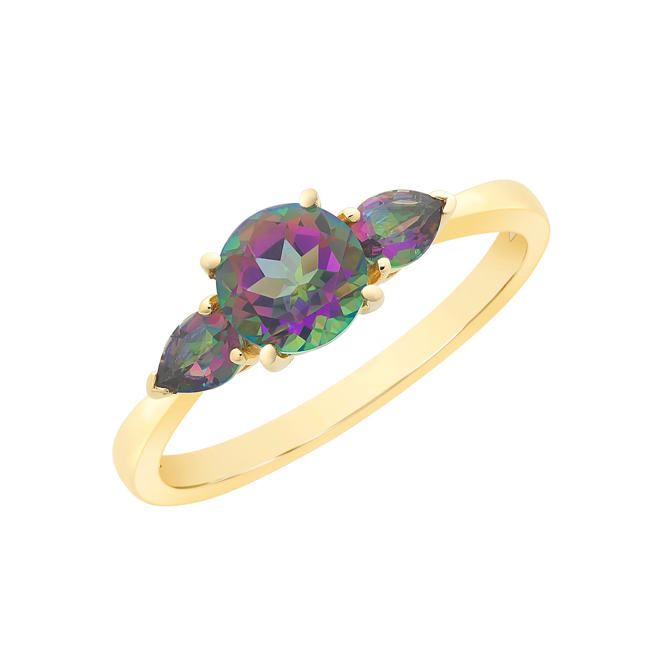 Loading... Please wait...9ct yellow gold Mystic Topaz ring. Size "P" currently available.