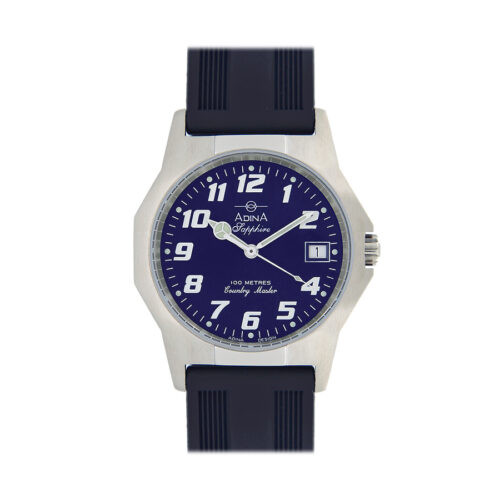 Loading... Please wait...The Adina Countrymaster Work Watch NK150 S6FS-SAP is an icon in the Adina Collection. This workhorse has a reputation to be envied! The easily read blue full figured dial is highlighted in the robust nickel free all stainless steel case and east fitting and wearing strap. This watch is designed to be worked in and worn every day including swimming and showering being 10ATM water resistant. Watch operation is simple through the Bi-oring crown and the Swiss Made movement is protected behind a tough sapphire crystal glass.