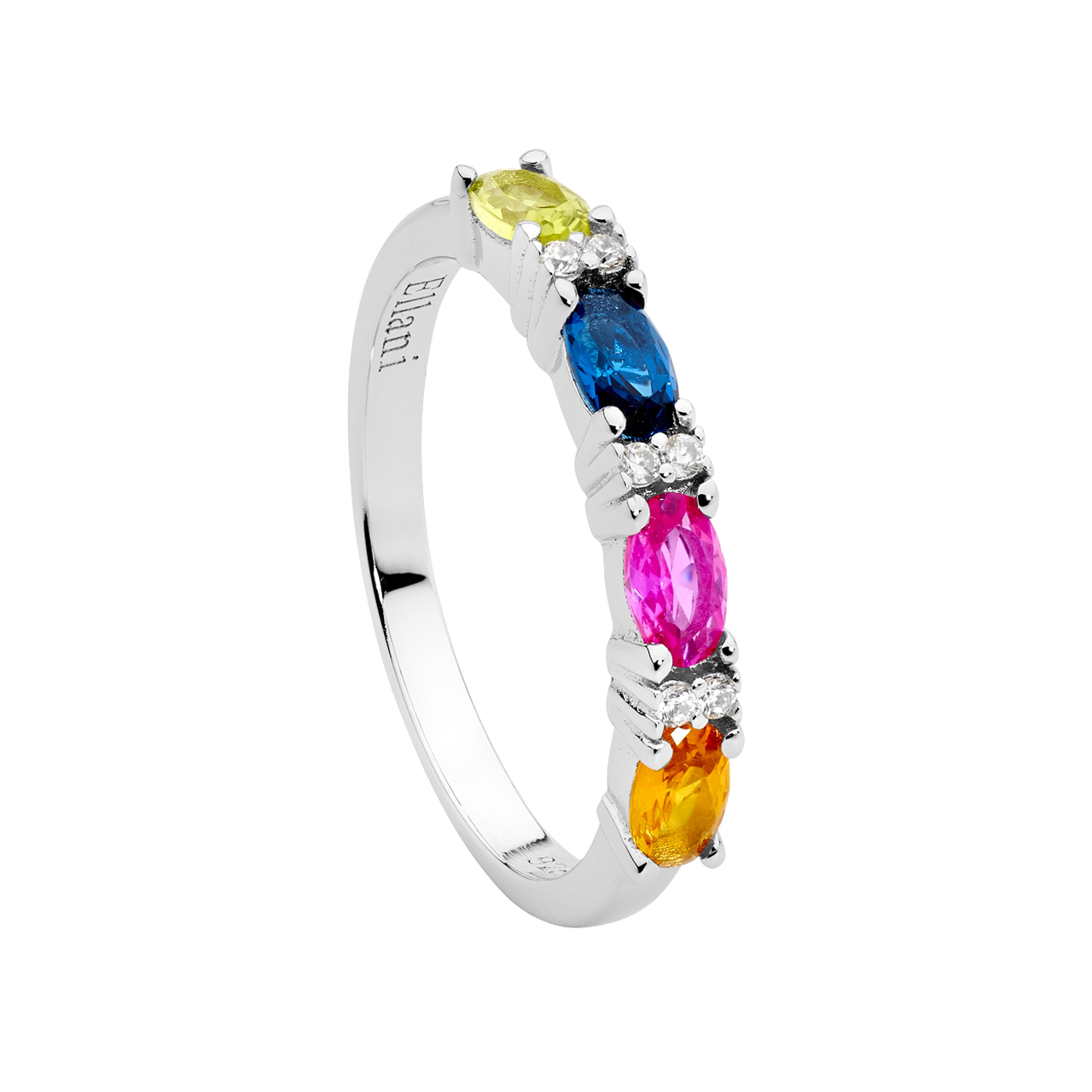 Loading... Please wait...Sterling silver multi coloured oval and white round Cubic Zirconia ring. Currently available in size "8".