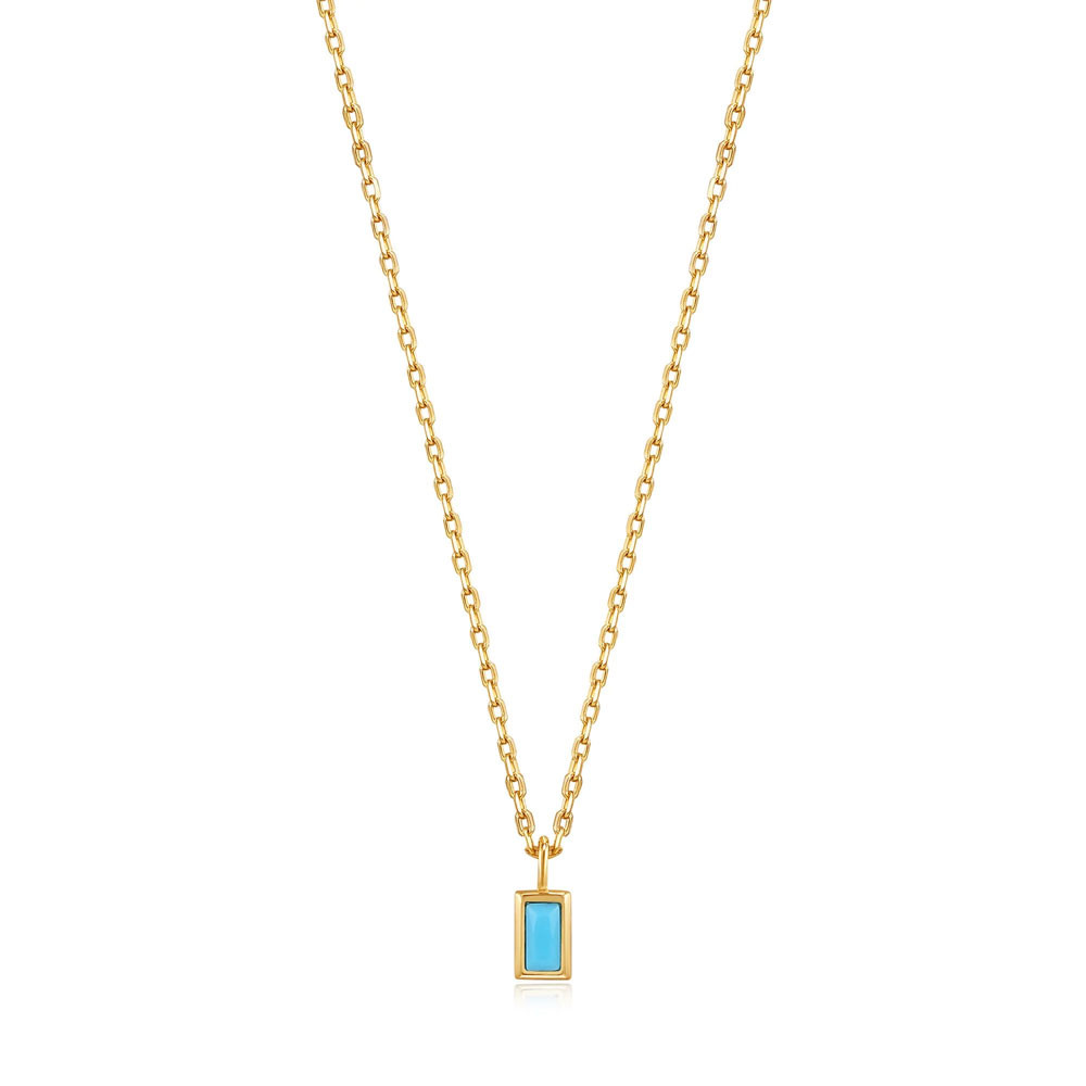 Loading... Please wait...Ania Haie sterling silver yellow gold plated Into The Blue synthetic turquoise stone necklace (adjustable 43cm + 5cm chain included).