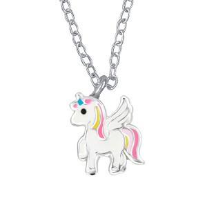 Loading... Please wait...Sterling silver enamel unicorn pendant with sterling silver 40cm chain (+ 5cm extender).