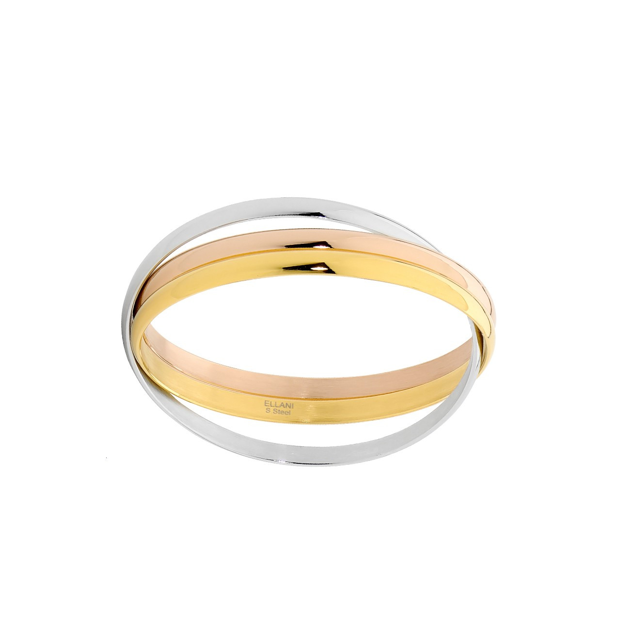 Loading... Please wait...Size 65mm stainless steel, rose gold IP plated and yellow gold IP plated triple linked bangle.